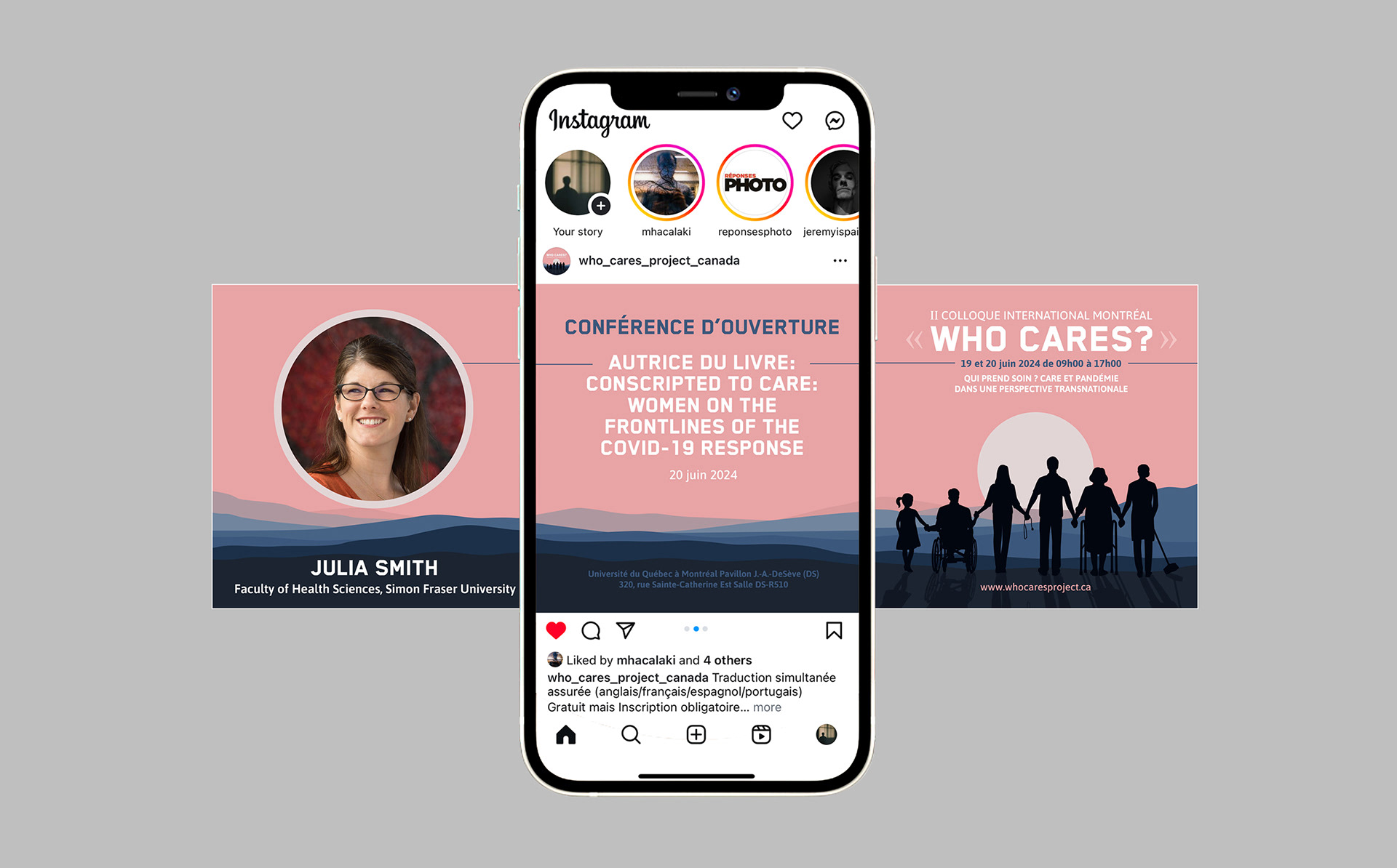 J'ai eu la chance et le plaisir de travailler sur le graphisme lors de la deuxième et du volet canadien de la conférence internationale « Who Cares ? » qui vise à présenter les résultats d’un projet de recherche international, en cours, réalisé dans six pays : Le Brésil, le Canada, la Colombie, les États-Unis, la France et le Royaume-Uni.